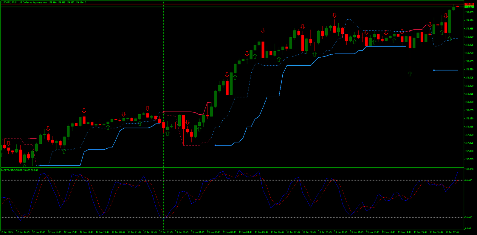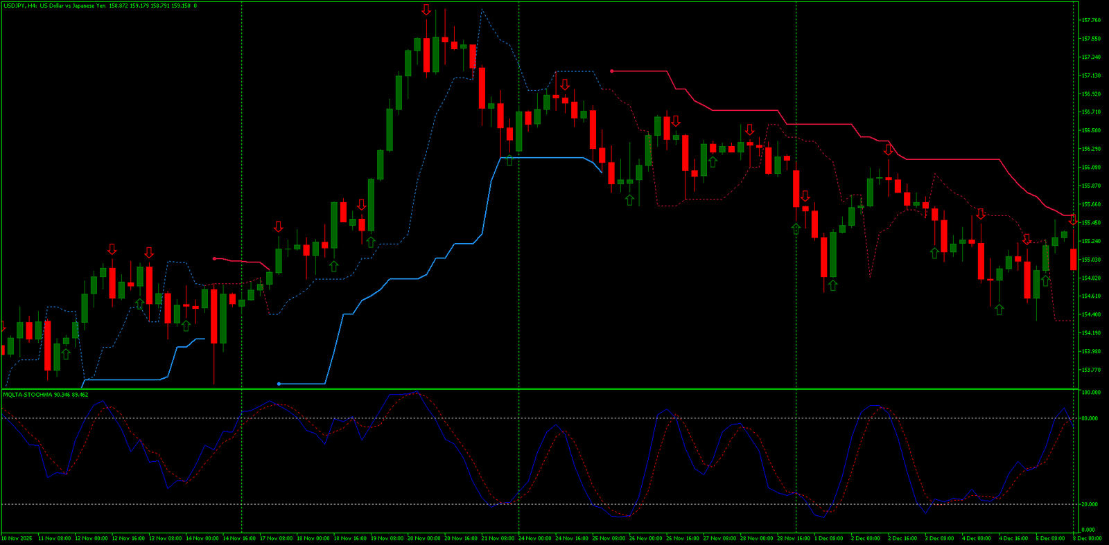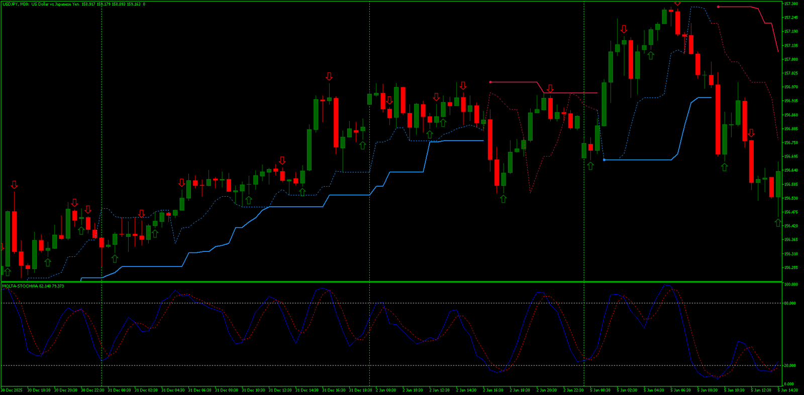 A beleza dessa estratégia Forex para MT5 que não repinta reside em sua simplicidade operacional. Não há sobreposição de filtros, nem combinações complexas de osciladores. Tudo gira em torno de duas perguntas: